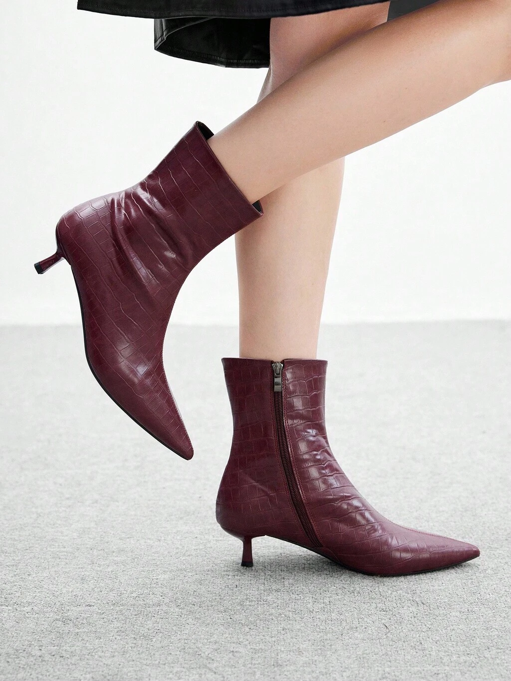 CUCCOO BASICS Solid Color Pointed Toe Fashionable Versatile Casual High Heel Ankle Boots, Suitable For Daily Wear For Christmas