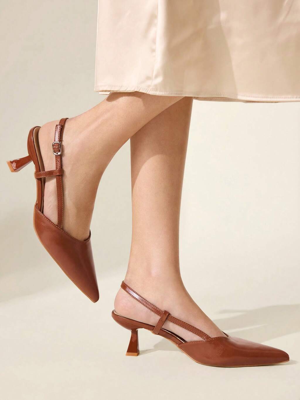 CUCCOO BIZCHIC Pointed Commuter Coffee Brown Kitten Heel Shoes Women Versatile Daily Work High Heel Slippers Spring Shoes