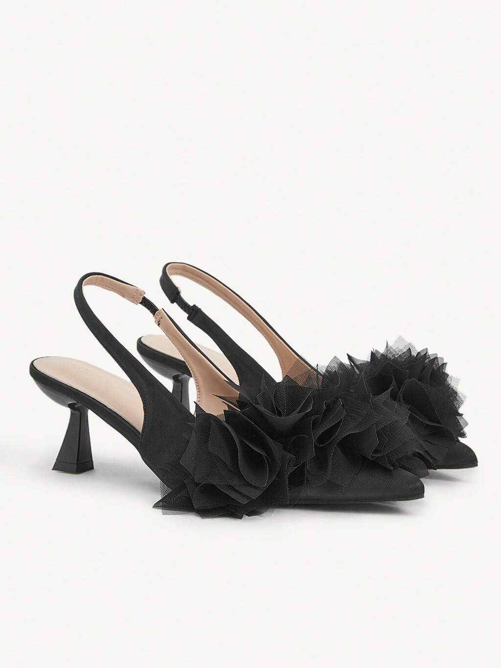 CUCCOO HITCHD Women's Pointed Toe 3D Floral Decor Elegant High Heel Mules Wedding Shoes Summer Shoes Bride Shoes