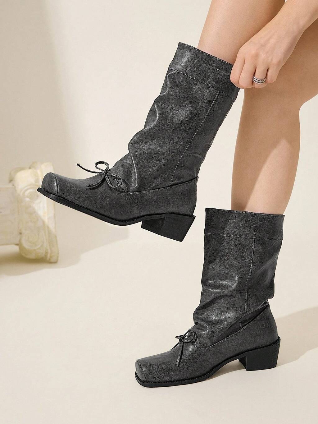 CUCCOO BIZCHIC Women's Fashionable Versatile Commuting Ruched Mid-Calf Boots For Christmas