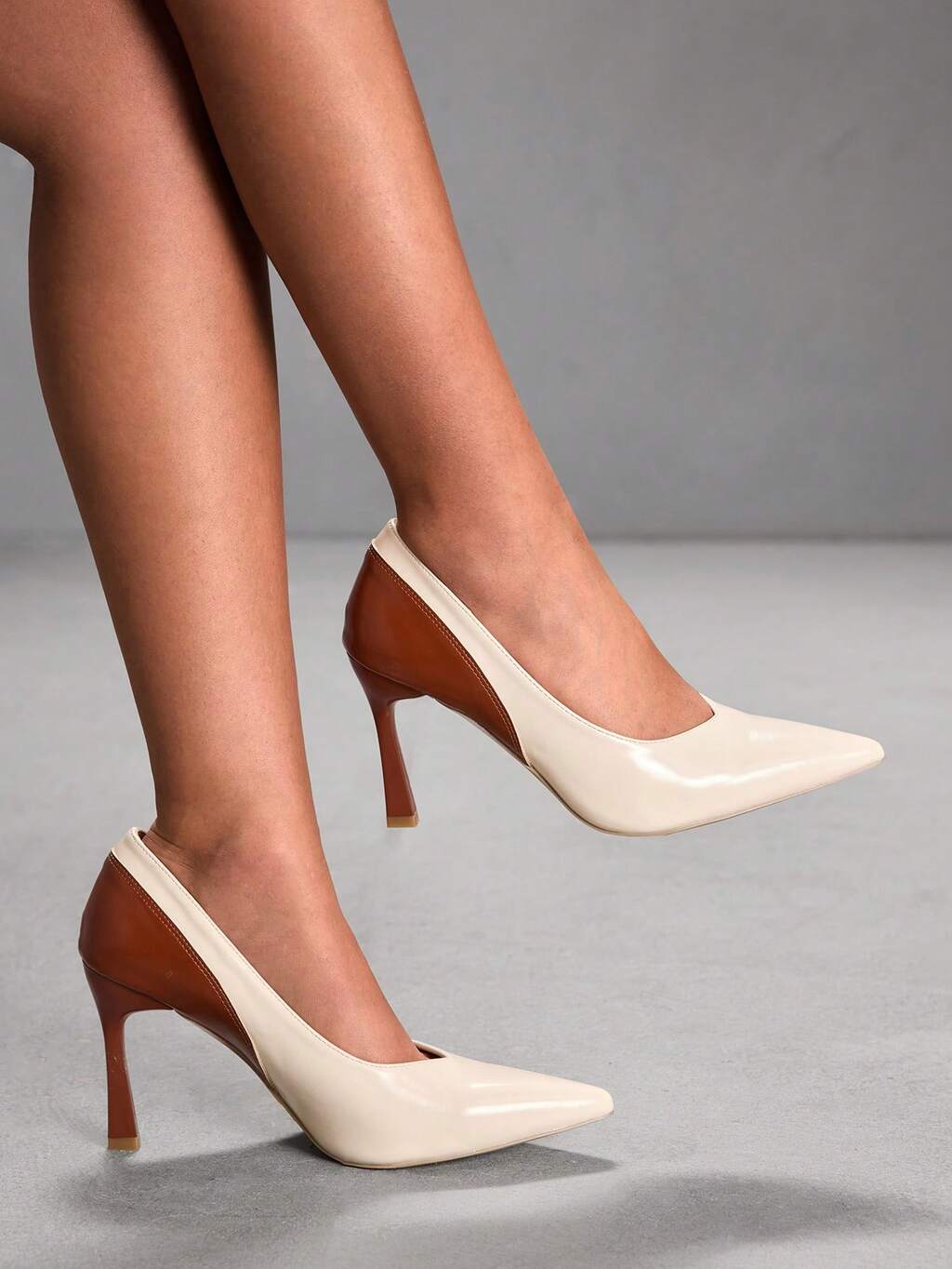 CUCCOO SZL Contrast Color Pointed Toe Fashionable Versatile Elegant Commuting High Heels For Christmas Valentine's Day