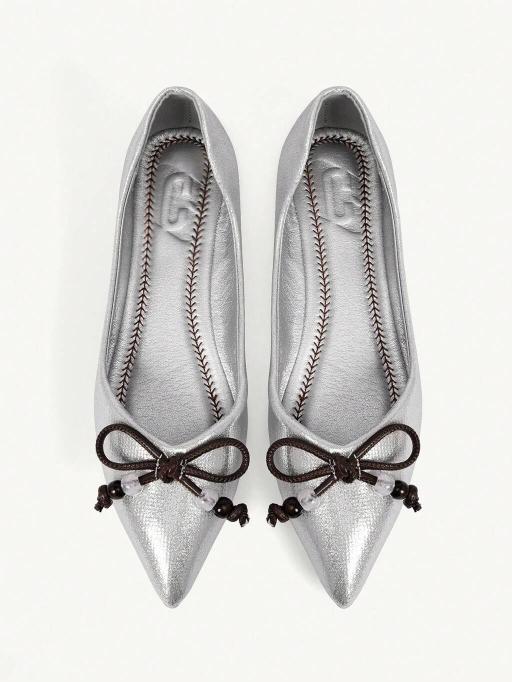 CUCCOO HITCHD Women Lace Flats With Faux Pearl Chain, Ribbon Twist Hollow Design, Pointed Toe, Soft And Elegant, Suitable For Wedding, Bridal, Bridesmaid, Casual Afternoon Tea And Dating Summer Shoes Summer Break Easter For Christmas Elegant Shoes Wedding Shoes Summer Shoes Bride Shoes