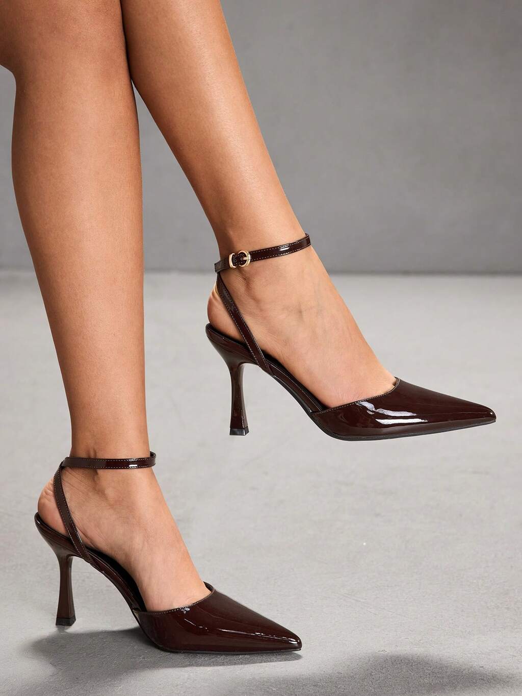 CUCCOO SZL Women Shoes Pointed Thin High Heel Brown Ankle Strap Slingback Women's High Heel Shoes Simple Elegant Fashion Sexy Party Banquet Women's High Heel Shoes Women's Shoes Spring Shoes