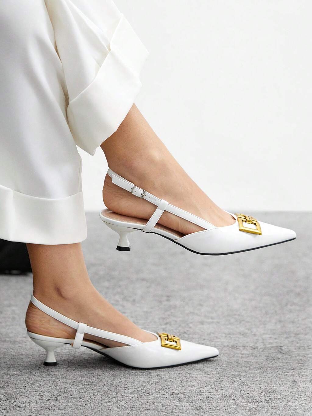 CUCCOO BIZCHIC Women's Pointed Toe Kitten Heel Fashionable White Daily Versatile Commute High Heel Pumps With Backstrap, Suitable For Work, Shopping, Office For Christmas Spring Shoes