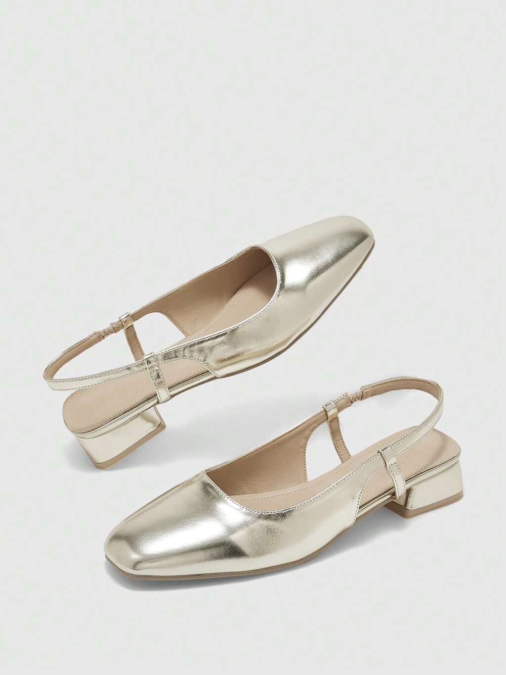 CUCCOO BIZCHIC Women's Round Toe Low Chunky Heel Gold Casual Comfortable All-Match Versatile Slingback Flats Loafers For Christmas Spring Shoes