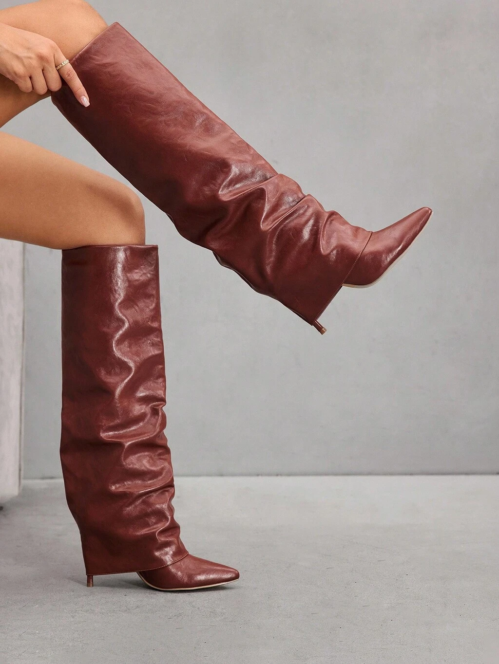 CUCCOO SZL Women's Pointed Toe Stiletto Heel Boots, Brown PU Dual-Layer Material Design, Fashion Minimalist Comfortable For Daily, Party, Event, Slip-On With Side Zipper