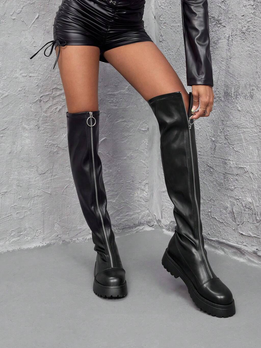 CUCCOO BASICS Black Thick Platform Chunky Heel Over-The-Knee Boots, Fashion