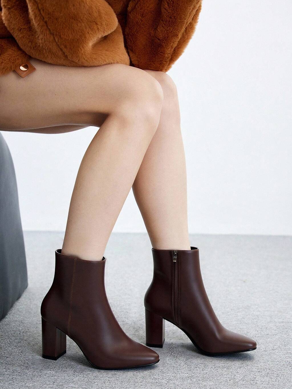 CUCCOO BIZCHIC Women's Pointed Toe Chunky Heel Ankle Boots, Fashion Minimalist Commuter Ankle Boots With Side Zipper, Classic Coffee Color, Mid Heel, Autumn/Winter For Christmas Spring Shoes