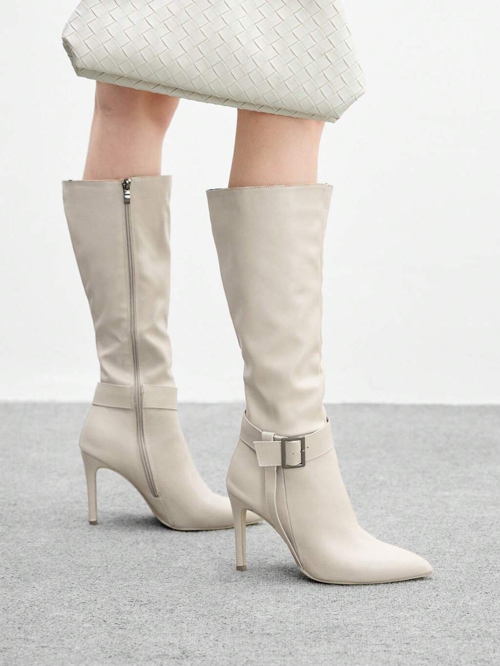 CUCCOO BIZCHIC Elegant Pointed Toe High Heel Ankle Boots, Beige High-Quality Commuter Boots, Fashionable & Versatile New Tall Boots, Showcasing Feminine Charm & Elegant