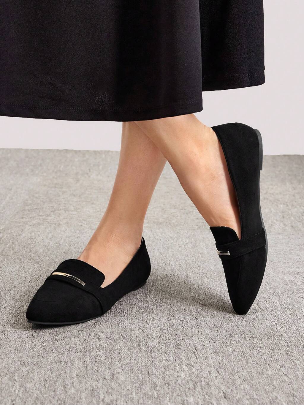 CUCCOO BIZCHIC Women Metal Decor Loafers, Elegant Faux Suede Black Flats For Summer Vacation Shoes Summer Back To School Shoes College Student Shoes Elegant Basics Business Casual Business Chic Spring Shoes Spring Break Easter For Christmas Spring Shoes