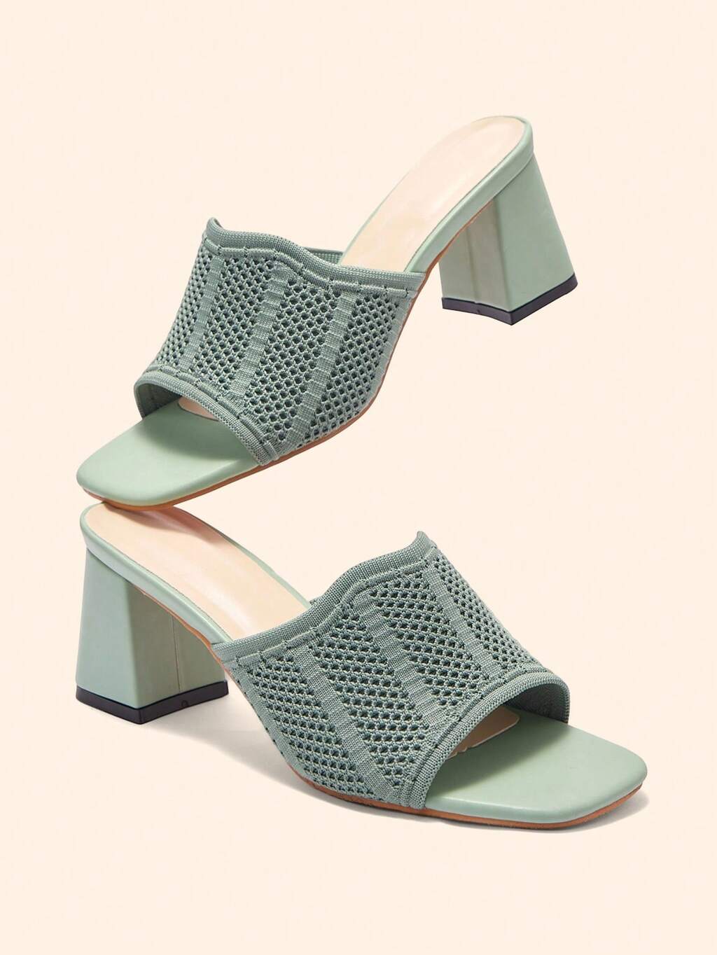 CUCCOO BASICS Woman Shoes Minimalist Square Toe Chunky Heeled Mule Beige Elegant Summer Heeled Sandals For Summer Graduation Heels Prom Heels Vacation Shoes Summer Back To School Shoes College Student Shoes Spring Shoes Spring Break Easter