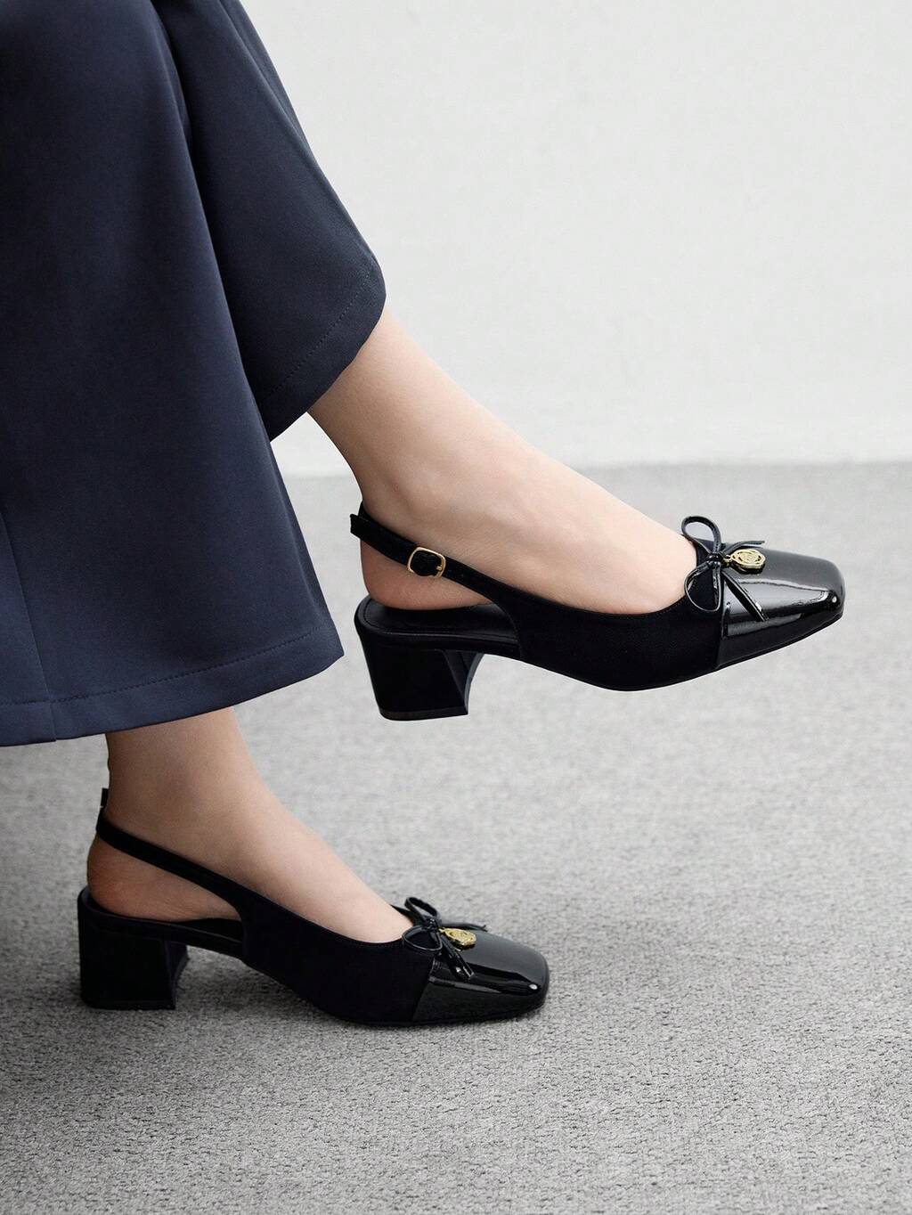 CUCCOO CHICEST Women's High Heel Pumps, Spring/Summer New Design With Bow, Pointed Toe, Mid Heel, Bicolor PU Leather, Elegant For Dates, Romantic And Sweet Open Toe Shoes Summer Shoes Wedding Shoes Bride Shoes