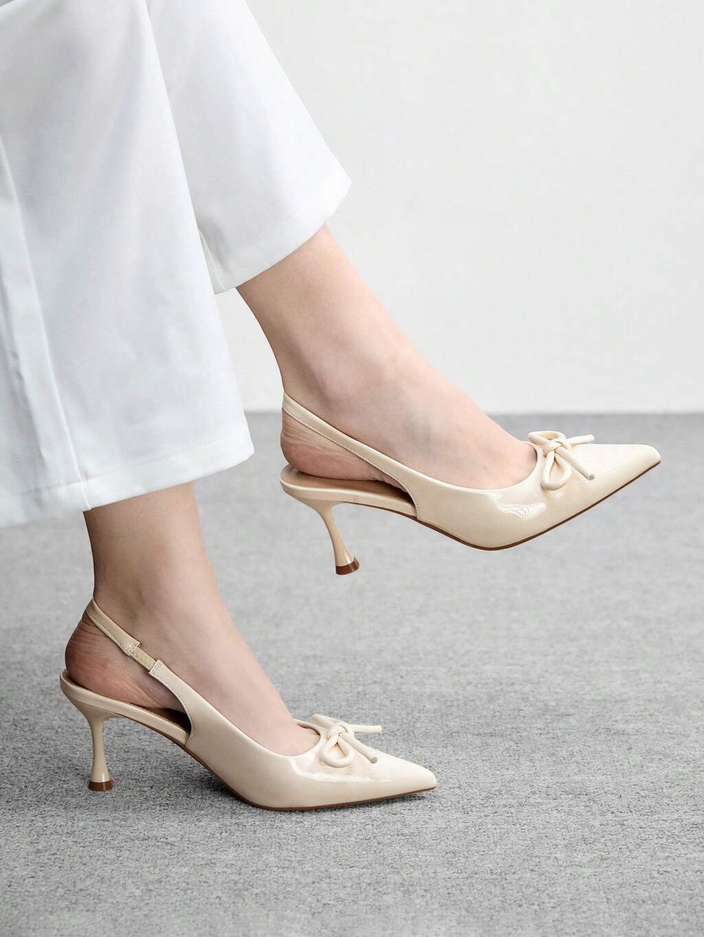 CUCCOO BIZCHIC Pointed Toe Stiletto Heel Beige Backstrap Women's Pumps, Slingback Dress Shoes For Daily Commute, Work, Party