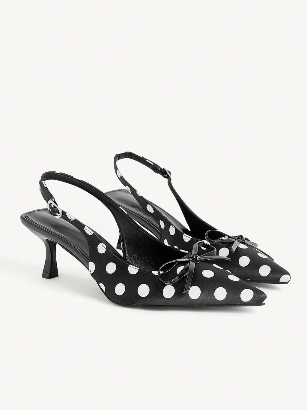 CUCCOO CHICEST White Polka Dot Satin Pointed High-Heeled Sandals On A Black Background, French Retro Sweet Element Style, Suitable For Women Who Like Sweet And Cool Girlishness, It Is Very Suitable For Daily Dating, Afternoon Tea Or Light French Clothing When Going Out On The Street Wedding Shoes Summer Shoes Bride Shoes