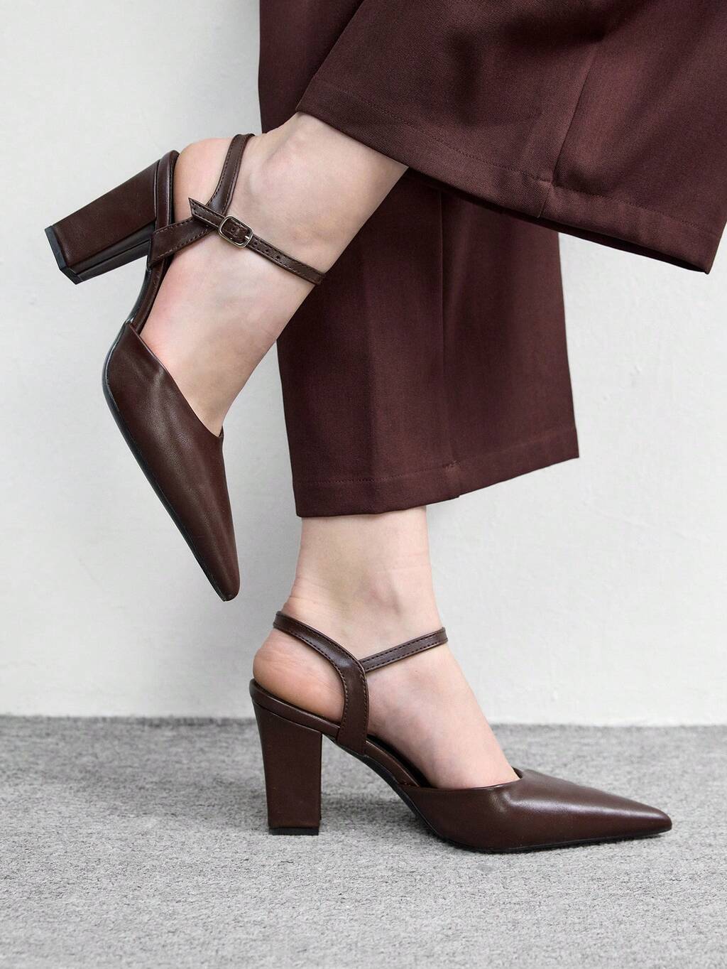 CUCCOO BIZCHIC Women Shoes Women's Pointed Thick High Heel Brown Ankle Strap Women's High Heel Shoes Shoes Stylish And Simple Daily Commuter Versatile High Heel Women's Shoes Spring Shoes