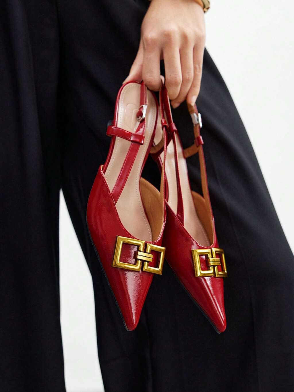 CUCCOO BIZCHIC Women's Fashion Pointed Toe Chain Decor Slingback Kitten Heel Pumps, Commuting Wear For Christmas Spring Shoes
