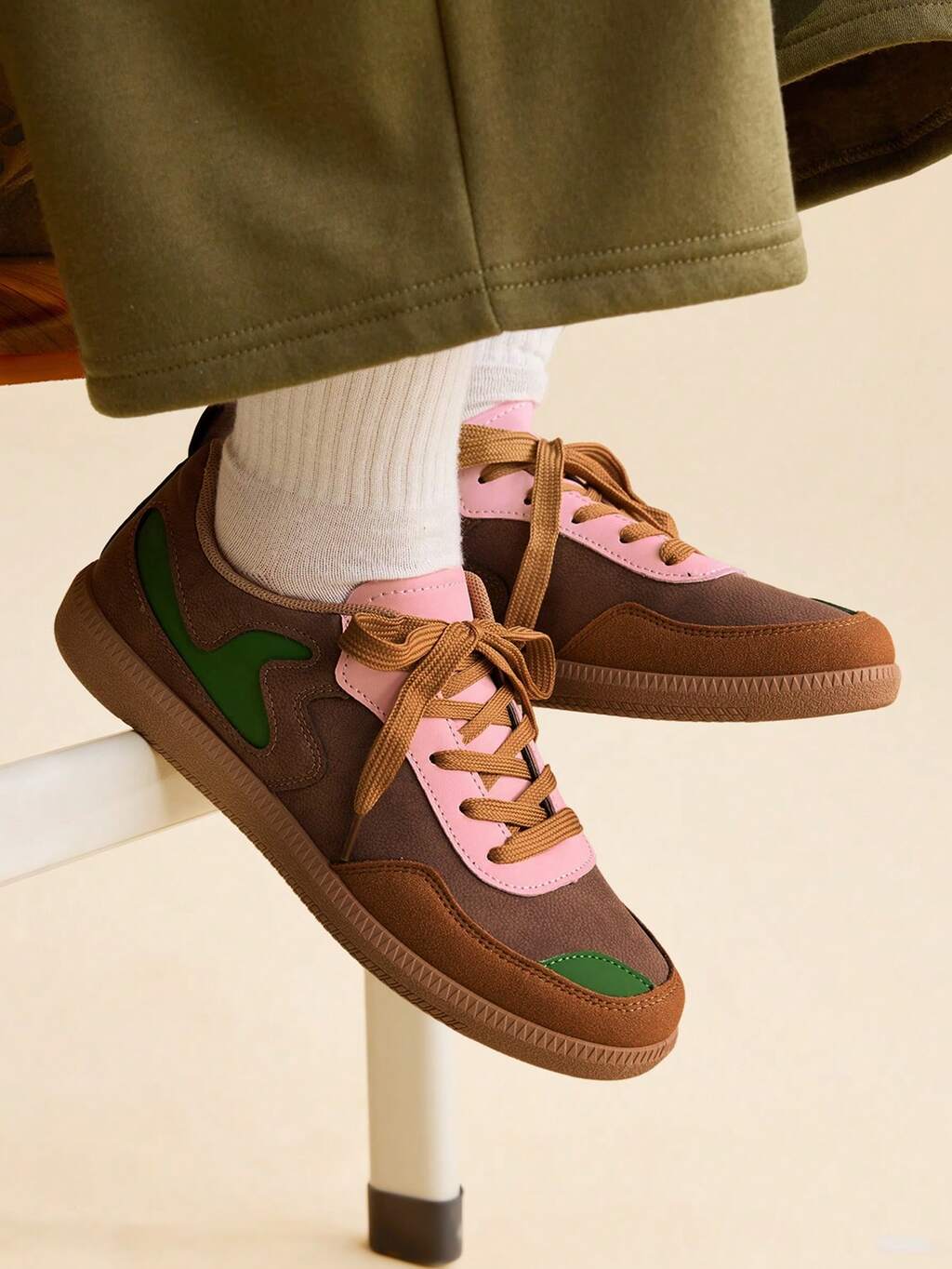 CUCCOO EASI Women's Lace-Up Contrast Color Flat Casual Sneakers