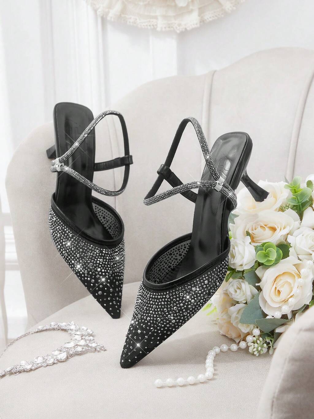 CUCCOO CHICEST Women's Pearly Rhinestone Transparent Strap Pointed Toe High Heel Sandals, Sexy And Elegant Closed Toe Slip-On Pumps Summer Shoes Summer Break Easter Prom Heels For Christmas Elegant Shoes Wedding Shoes Summer Shoes Bride Shoes