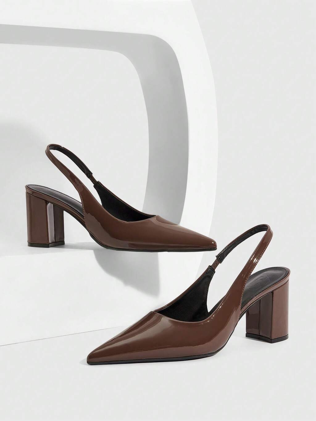 CUCCOO BIZCHIC Women Shoes Square Heel Metal Buckle Burgundy Mirror Fashion Simple Women's High Heel Shoes Back Belt Shoes Vacation Wear Versatile Commuter Wear Old Money Style Wear Spring Shoes