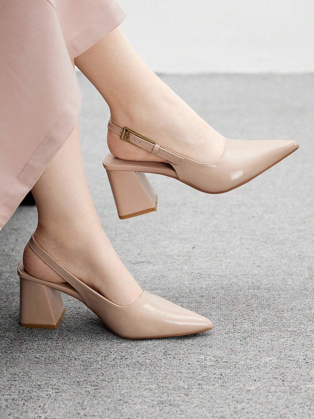 CUCCOO BASICS Women's Fashion Fabric Backstrap Chunky Heel Pointed Toe PU Leather Commuter Slingback Shoes, Suitable For Dates, Parties, And Vacations For Christmas Spring Shoes