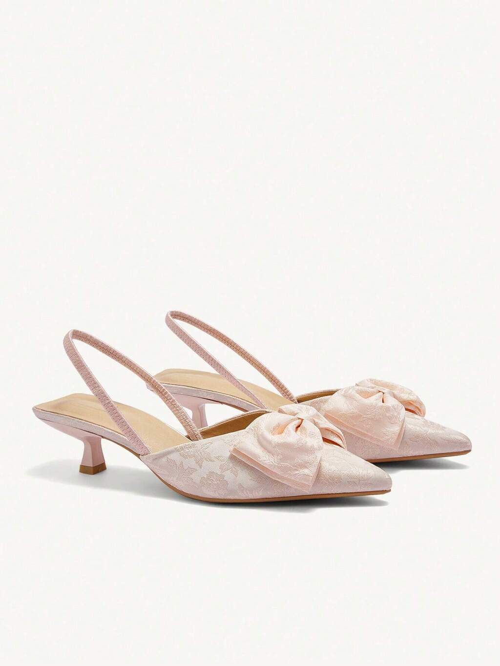 CUCCOO CHICEST Women's Pointed Toe Kitten Heel Pumps With Bow Decor, Solid Color, Ankle Strap, Elegant Daily Wear, For Outdoor Shopping, Festivals, Parties, Summer Summer Winter, Pair With Satin Dresses Summer Shoes Summer Break Easter Prom Heels Elegant Shoes Wedding Shoes Summer Shoes Bride Shoes