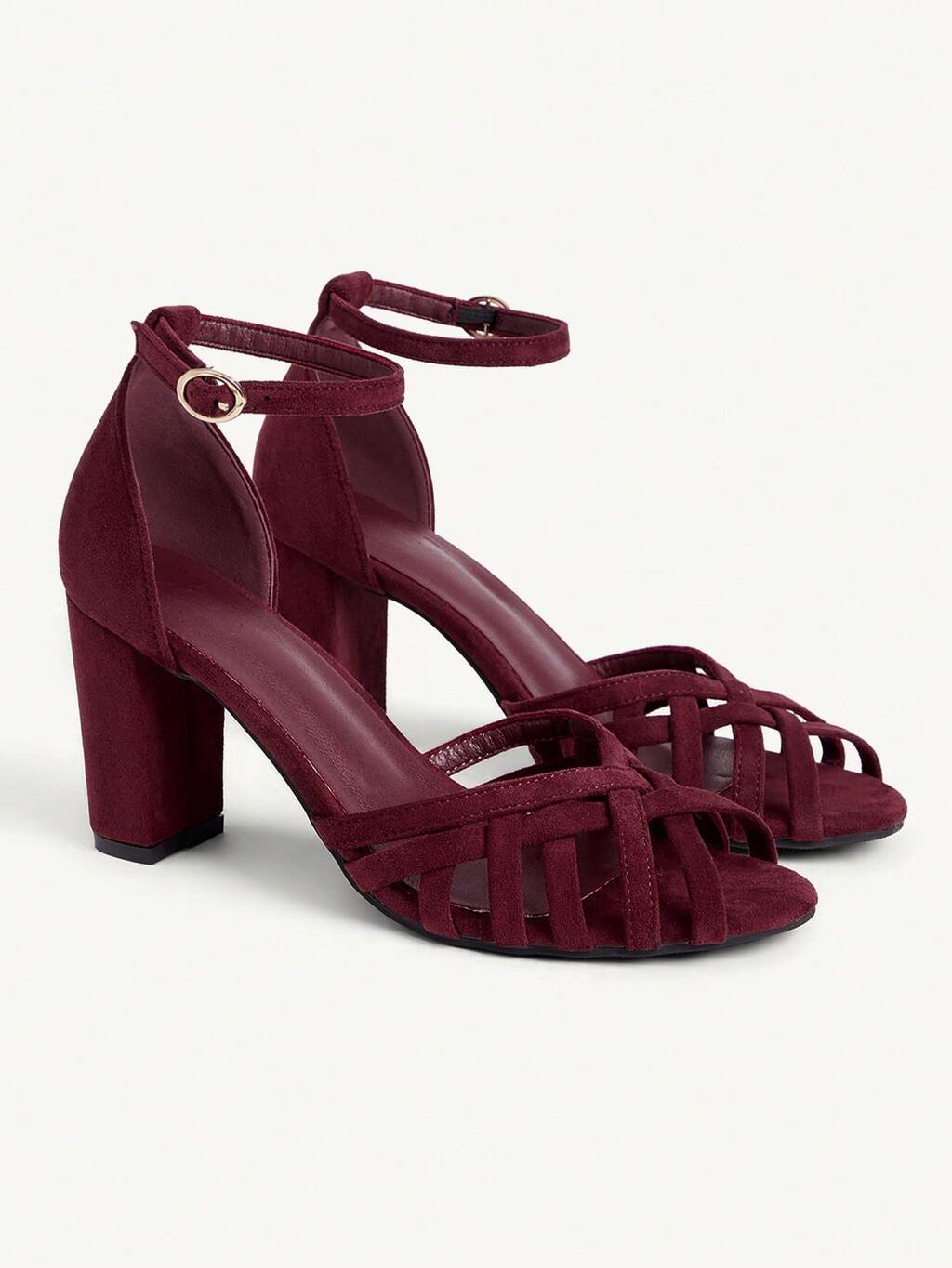 CUCCOO CHICEST Women's Fashion Wine Red Criss-Cross Strap Pointed Toe Thick High Heel Slip-On Shoes, Convenient For Commuting, Dating, Party, Festival, Holiday, Wedding Summer Shoes Summer Break Easter Prom Heels For Christmas Elegant Shoes Wedding Shoes Summer Shoes Bride Shoes