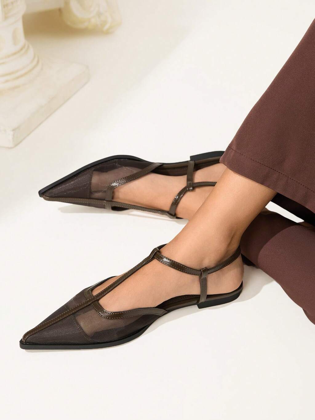 CUCCOO BIZCHIC Women's Pointed Toe Flat Low Heel Casual Slingback Black Comfortable Ballet Flats, Versatile Office And Commute Wear For Christmas Spring Shoes