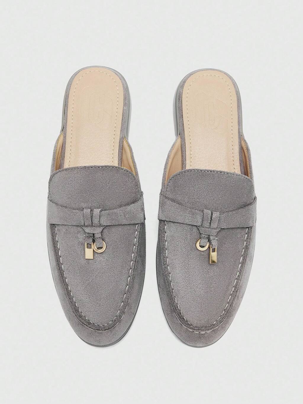 CUCCOO BIZCHIC Fashionable Gray Velvet Slip-On Flats, Comfortable Commuting Women Mules, Casual Daily Outdoor Walking Office Flat Shoes, Versatile For Christmas