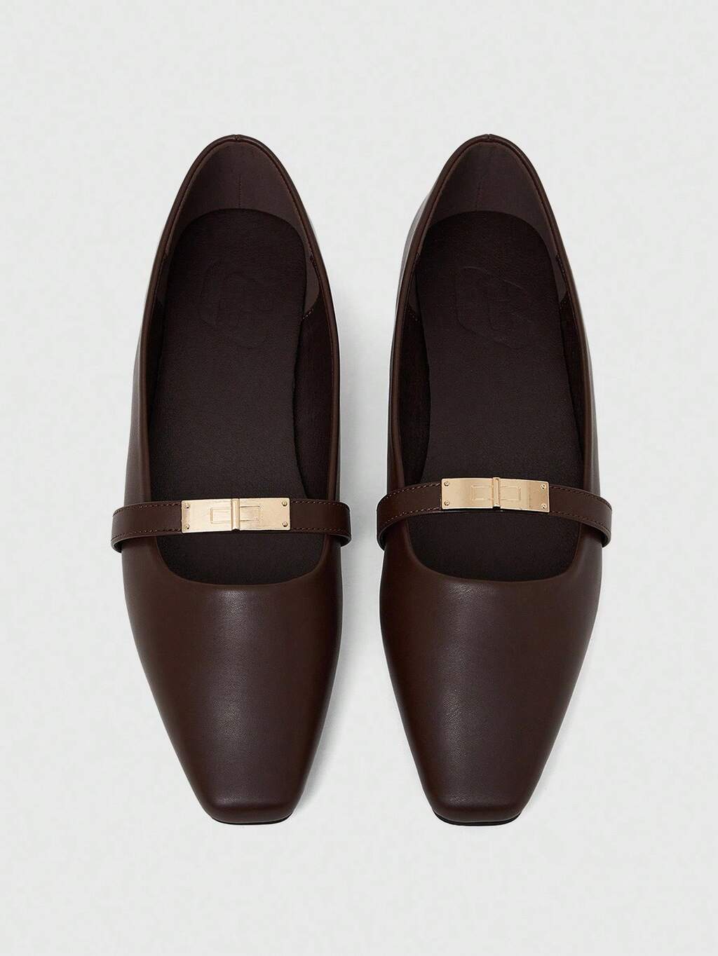 CUCCOO BIZCHIC Women's Square Toe Flat Chocolate Color Metal Buckle Slip-On Flats, Comfortable Casual Mary Jane Shoes Suitable For Dresses For Christmas Spring Shoes