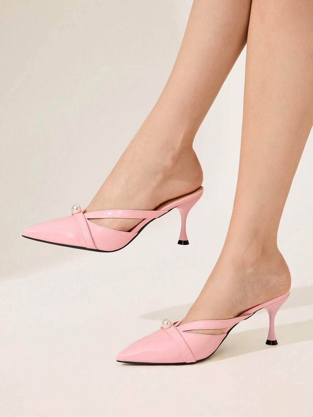 CUCCOO CHICEST Women's Pointed Toe Faux Pearl Decor Elegant High Heel Mules Valentine's Day Elegant Shoes Wedding Shoes