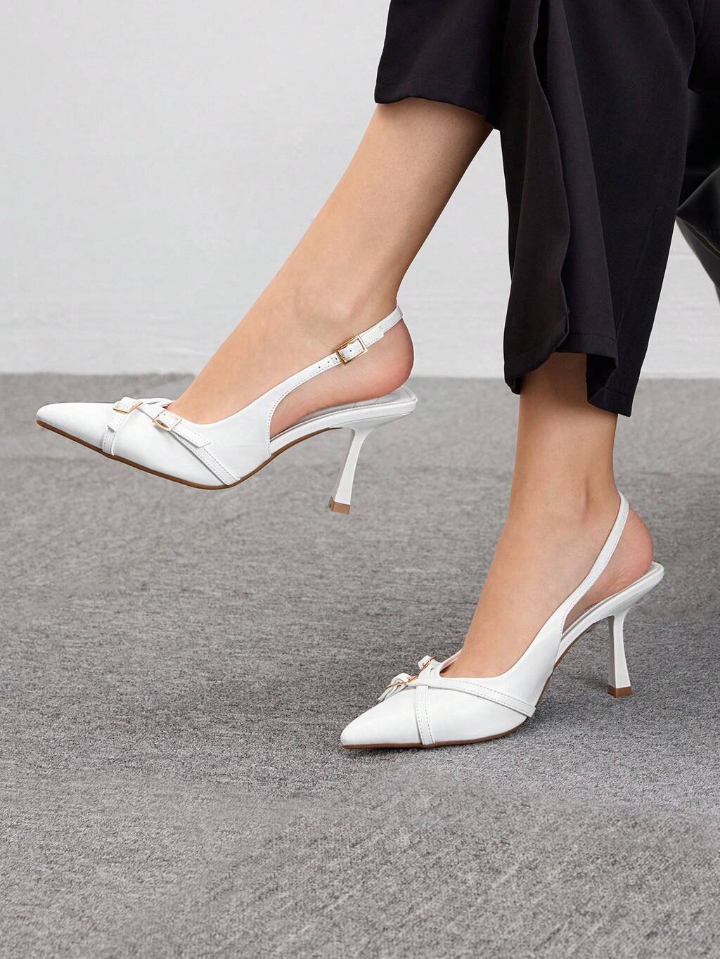 CUCCOO BIZCHIC White Fashion Pointed Toe Kitten Heel Slingback Pumps For Women, Commuting, Dating, Party, Wedding, Travel Spring Shoes Spring Break Easter