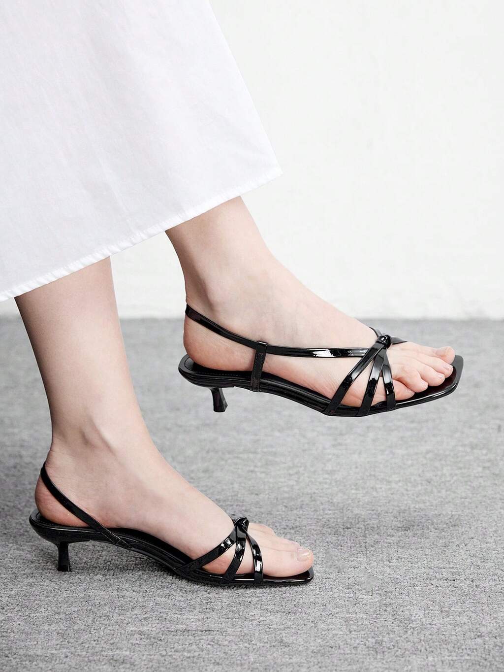 CUCCOO BIZCHIC Women Shoes Spring And Summer New Black Thin Strip With Open Toe Women's Middle Heel Sandals Simple Fashion Comfortable Daily Versatile Commuter Women's Sandals Women's Shoes