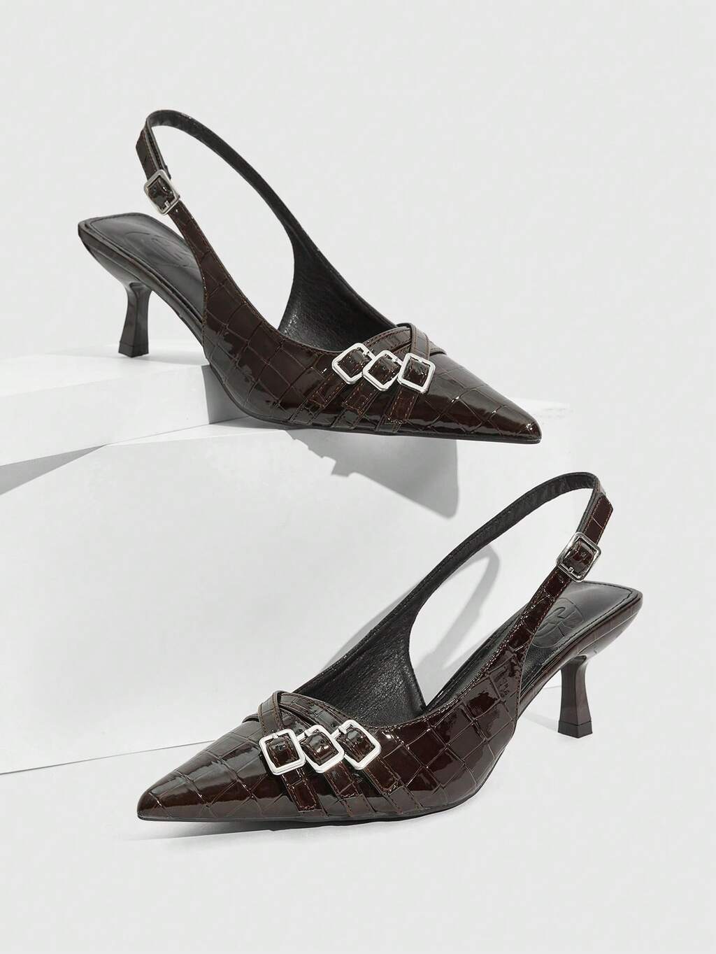 CUCCOO SZL Women's Pointed Toe Buckle Design Fashionable High Heels, Versatile For Daily Wear