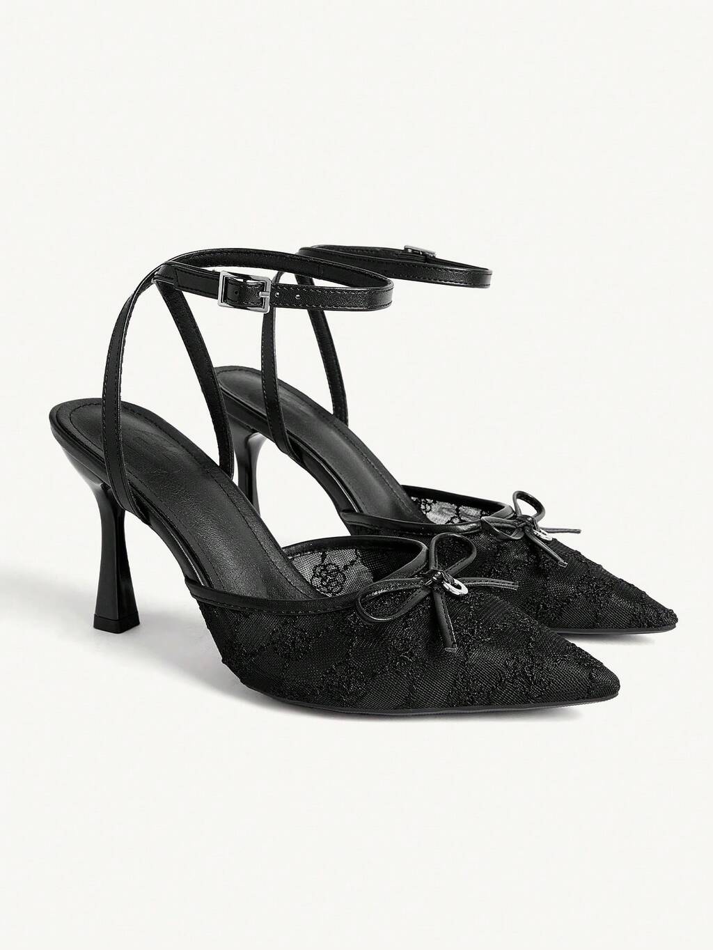 CUCCOO CHICEST Women's Black Mesh Lace Bridal Pointed-Toe Slingback Heels - Elegant Casual Resort Wedding Pumps