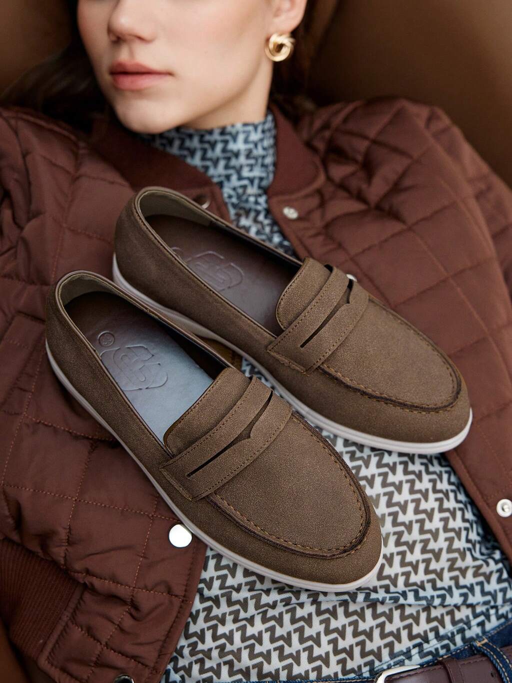CUCCOO BIZCHIC Women's Comfortable Round Toe Flat Shoes, Fashionable Suede-Like Casual Slip-On Flats, Deep Coffee Color, Suitable For Spring/Summer Daily Commute