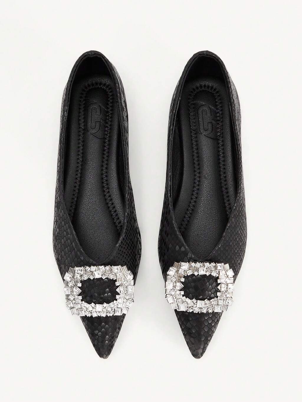 CUCCOO CHICEST Pointed Toe Low Vamp Rhinestone Square Buckle Flat Bottom Comfortable Versatile Fashionable Soft Sole Elegant Fairy Shoes Women's Shoes