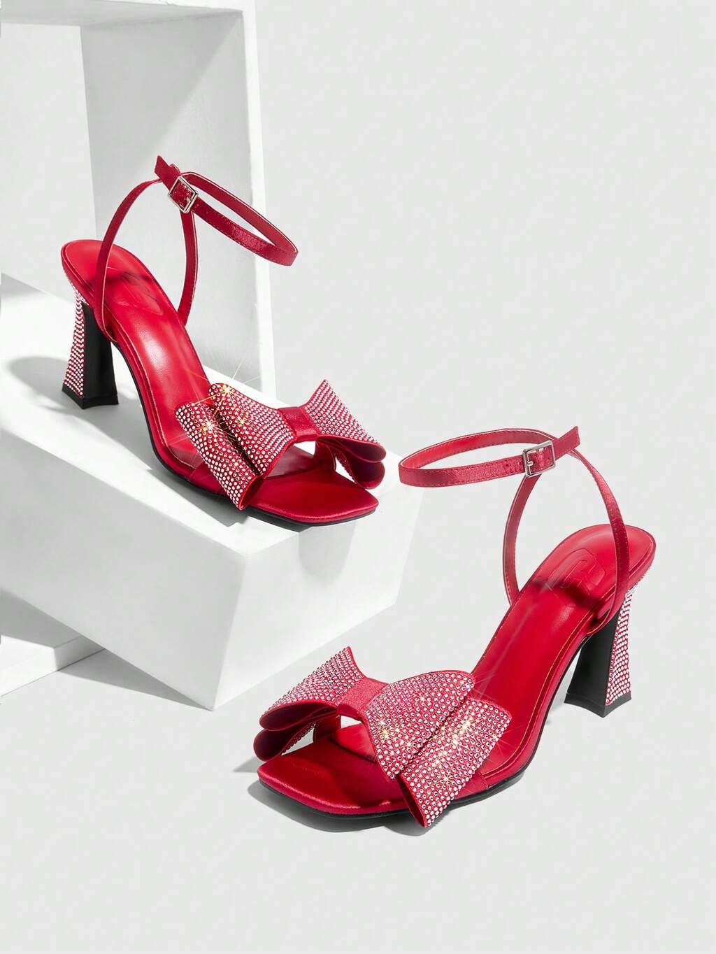 CUCCOO SZL Bowknot Crystal Decor High Heel Sandals, Comfortable & Stylish Outdoor High Heels For Christmas And New Year Holiday Vibe Fall And Winter Valentines