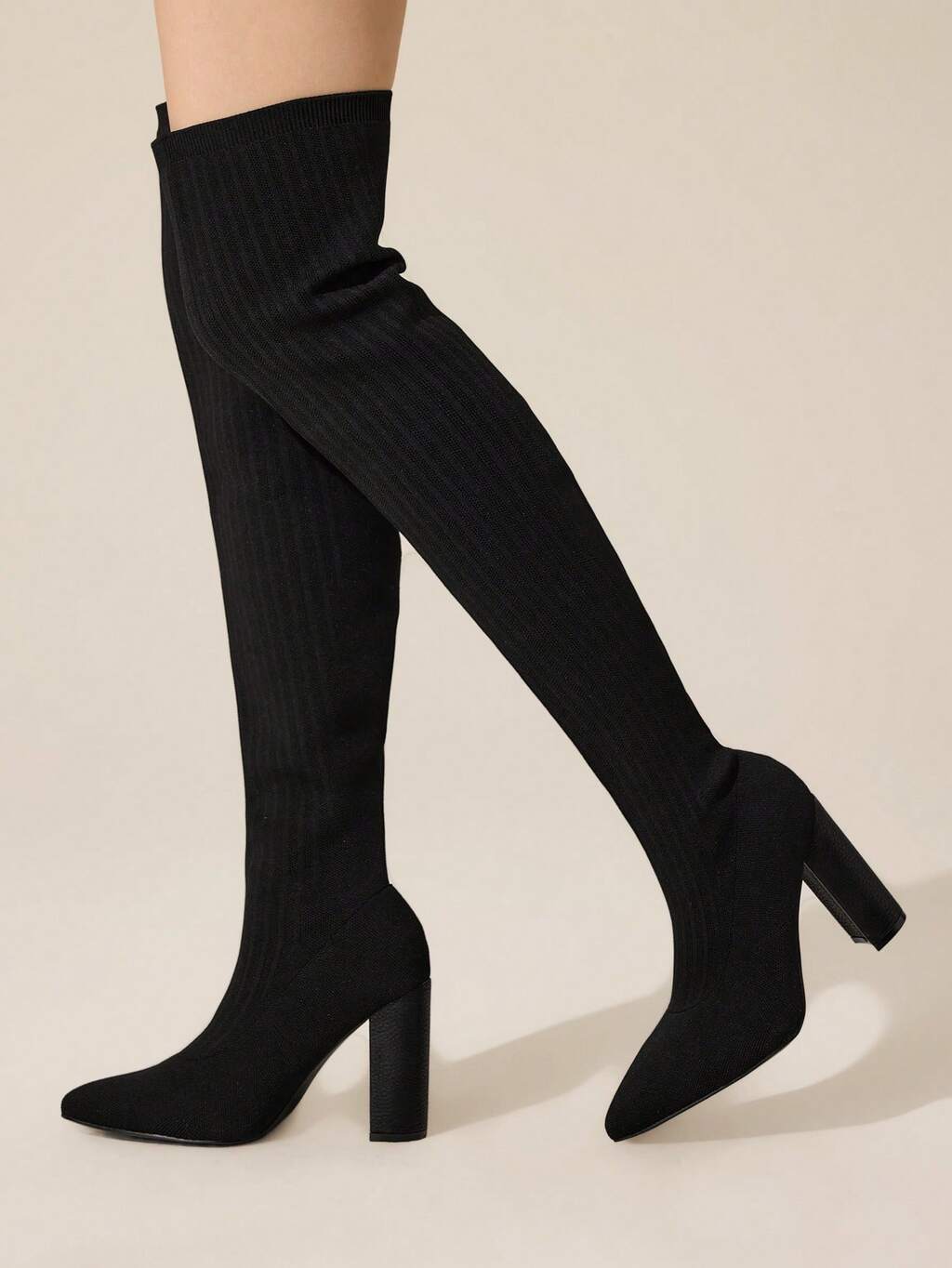 CUCCOO SZL 1 Pair Black Pointy Toe Thigh High Boots For Women, Suitable For Autumn/Winter New Year Holiday Valentines