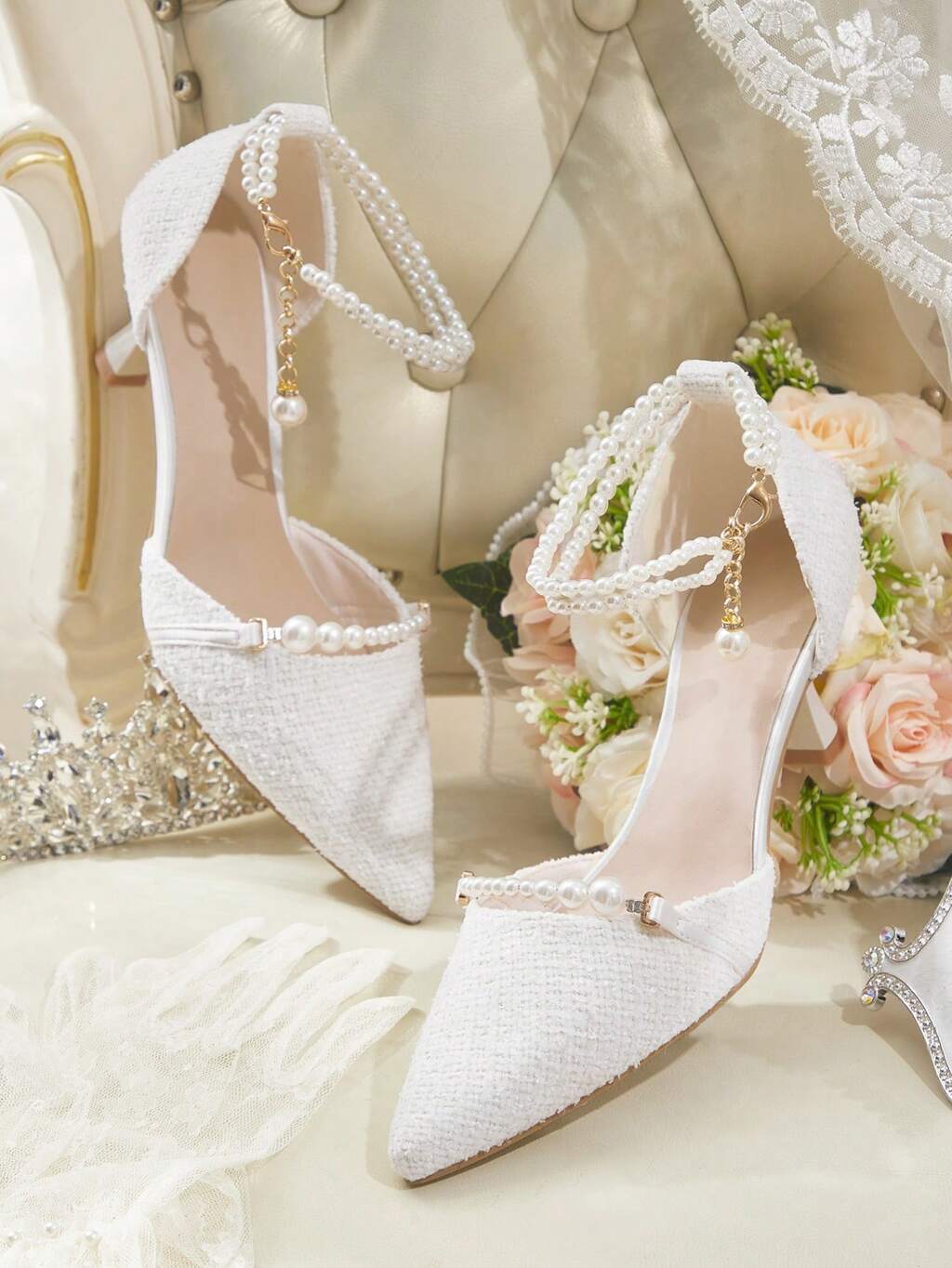 CUCCOO BIZCHIC Women Shoes Women's Pointed Thick Medium Heel White Mirror Ankle Strap Hollow Women's High Heel Shoes Stylish And Comfortable Commuters Business Versatile Women's Hollow Shoes Spring Shoes