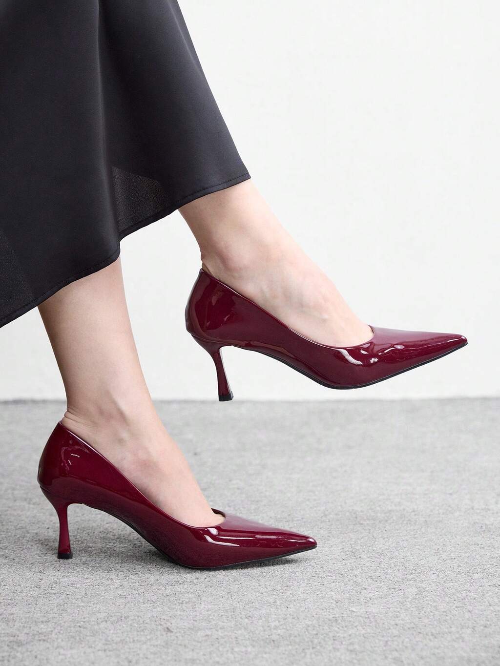 CUCCOO BIZCHIC Women Shoes Four Seasons New Burgundy Mirror Pointed Toe Thin Heel High Heel Low Vamp Women's High Heel Shoes Daily Versatile Commuter Business Dinner Party Wear Women's Shoes Spring Shoes