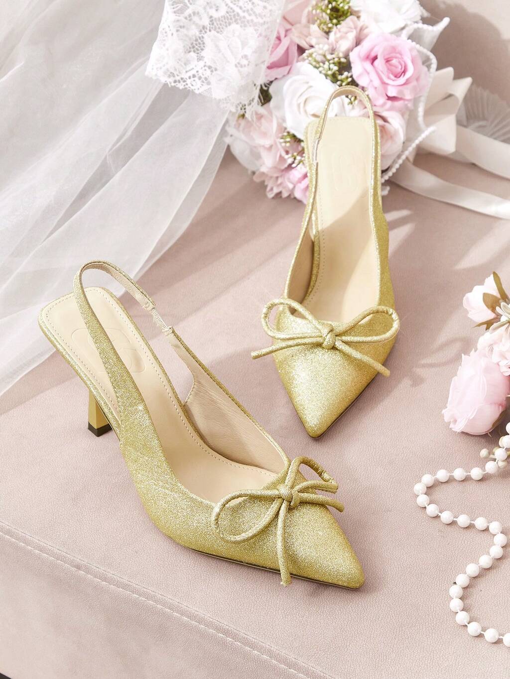 CUCCOO BASICS Pointed Toe Stiletto Heel Bowknot Open Back Fashion Party Versatile Women High Heel Pumps