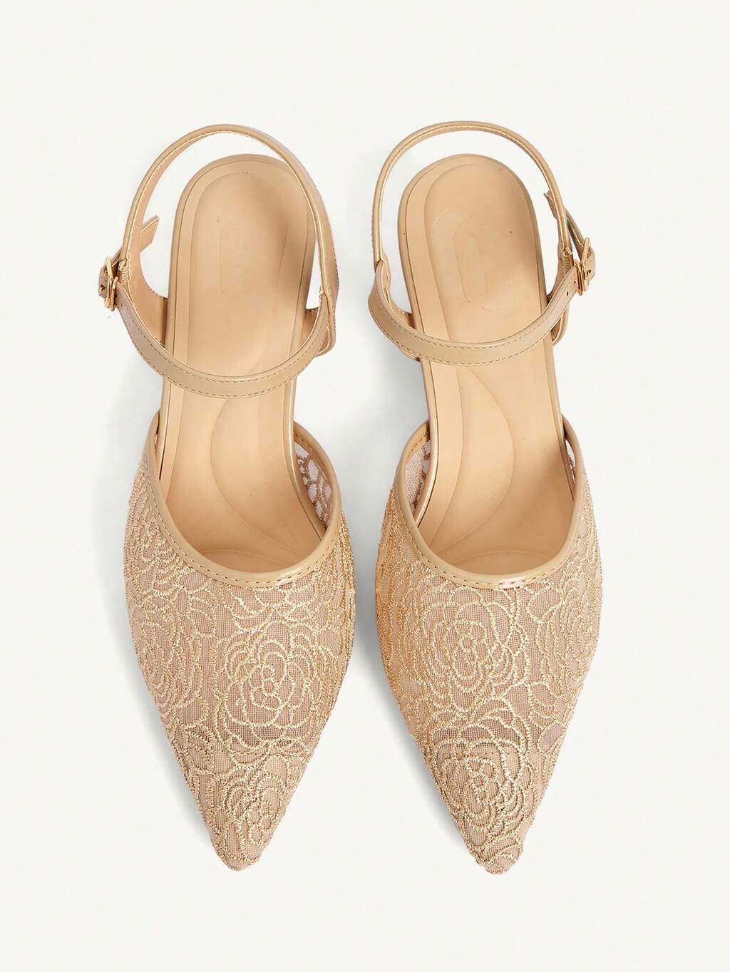 CUCCOO CHICEST Women Shoes Apricot Lace Splicing Slingback High Heels Women's Pointed Thin Heel Low Vamp Shoes