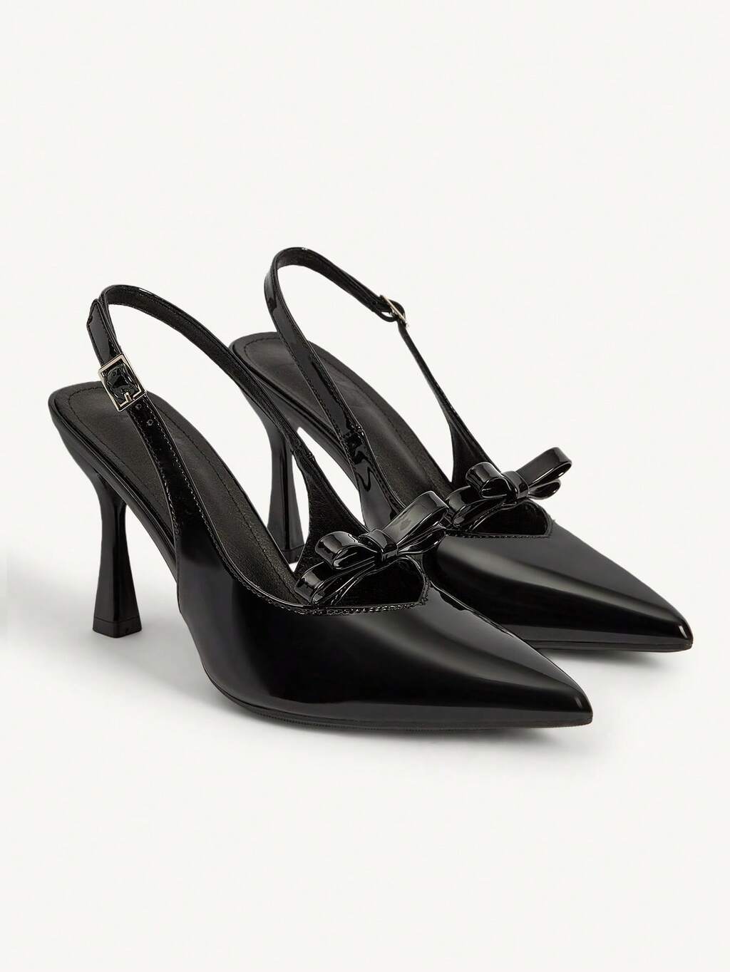 CUCCOO BIZCHIC Women Shoes Spring And Autumn New Black Mirror Point Thin Heel High Heel Slingback Low Vamp Women's High Heel Shoes Shoes Daily Versatile Commuter Office Workers Business Dinner Party Wear Women's Shoes