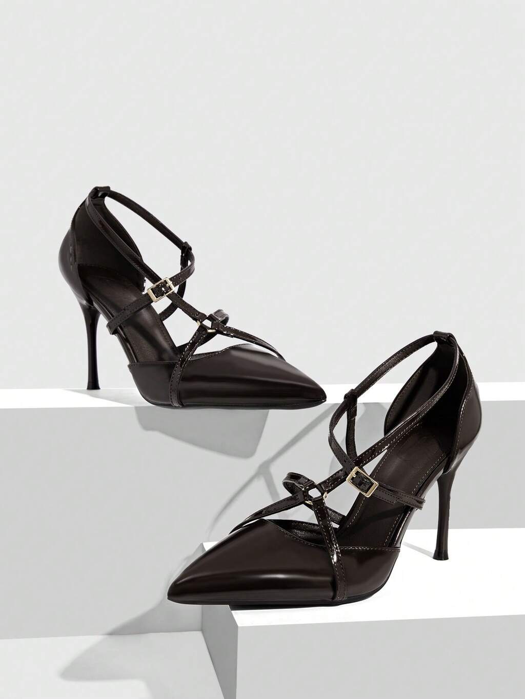 CUCCOO BIZCHIC Women's Pointed Toe Black Crisscross Strap Stiletto Heel Pumps, Spring/Summer Unique Sweet And Elegant Design, Perfect For Valentine's Day And Vintage Style Outfits