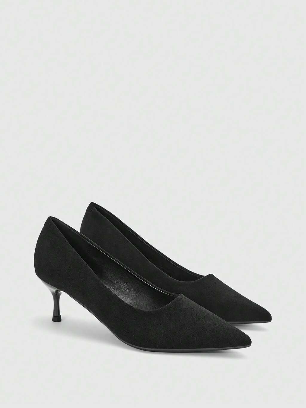 CUCCOO BIZCHIC Black Suede Pointed Toe Stiletto High Heels, Minimalist Commuter Style. The Suede Material, Pointed Toe Design, And Slim Heel Provide A Balance Of Elegance And Versatility For The Working Woman, Suitable For Commuting, Business Meetings, And Light Social Occasions. Spring Shoes