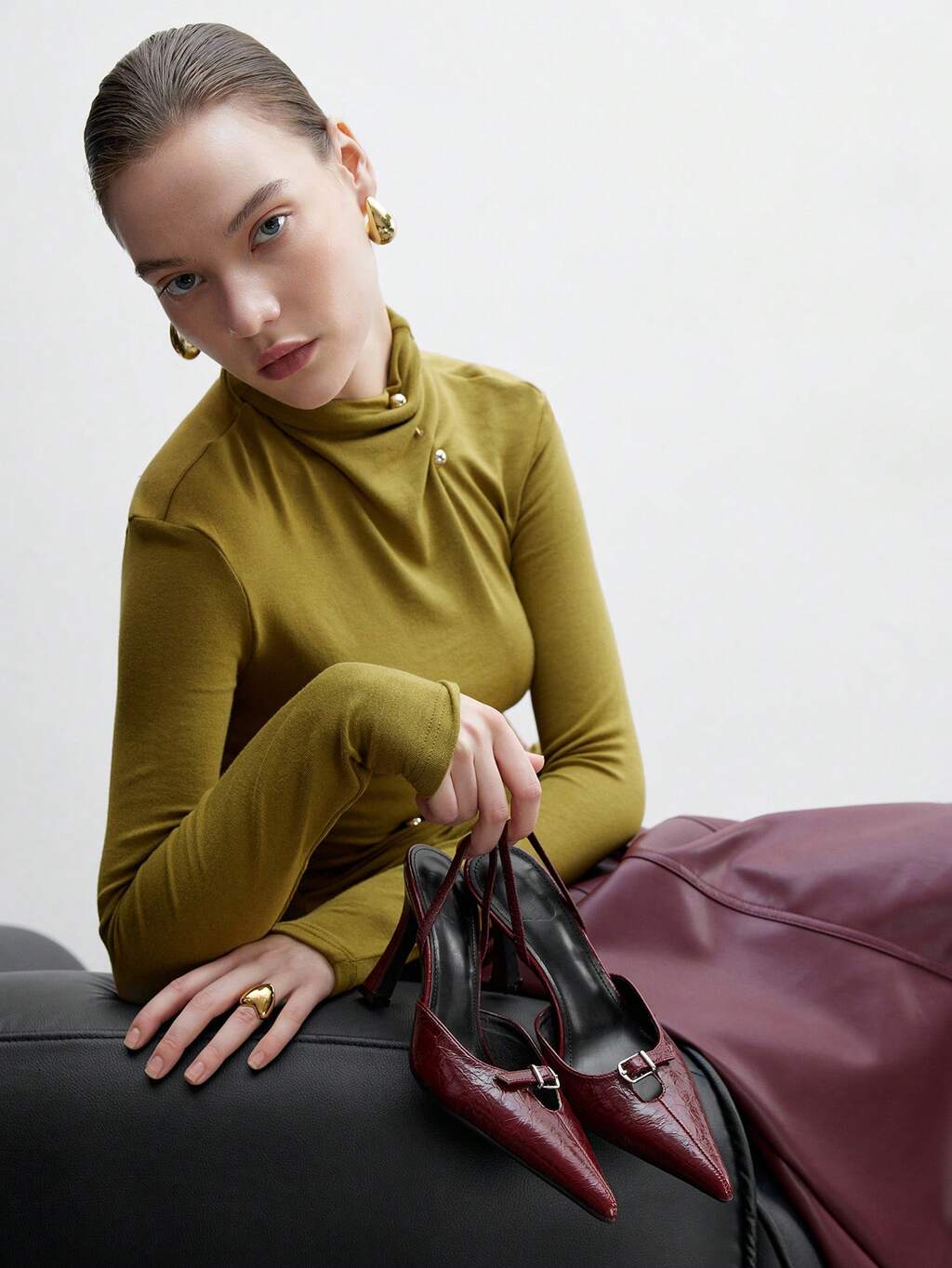 CUCCOO BIZCHIC Women's Pointed Toe Buckle Strap High Heel Pumps, Elegant Commuter Fashion Burgundy Patent Leather Stilettos, Versatile For Workplace, Formal Occasions, Valentine's Day, Christmas, Thanksgiving