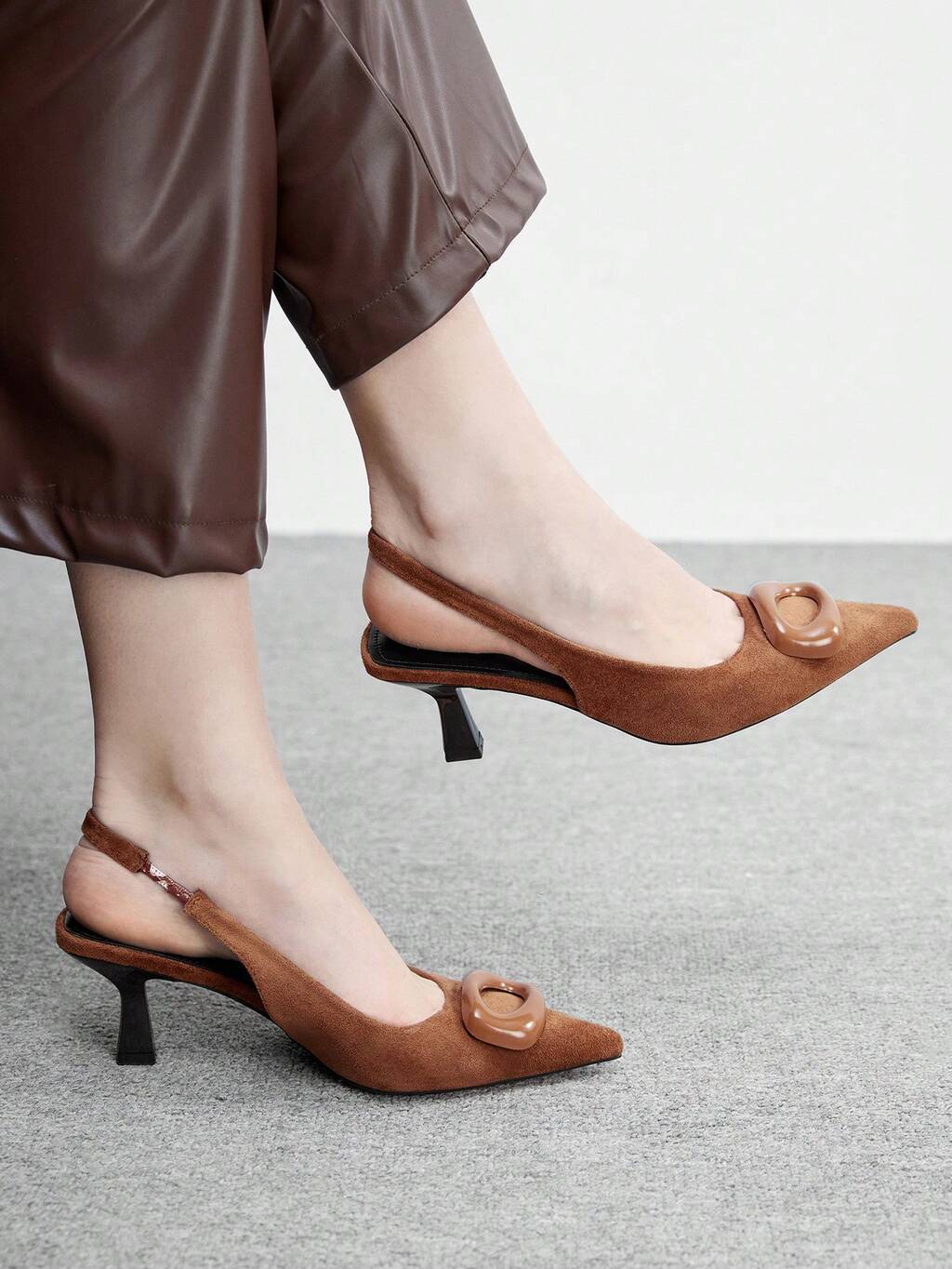 CUCCOO BIZCHIC Women's Pointed Toe Buckle Design Fashion High Heel Shoes For Daily Wear Spring Shoes