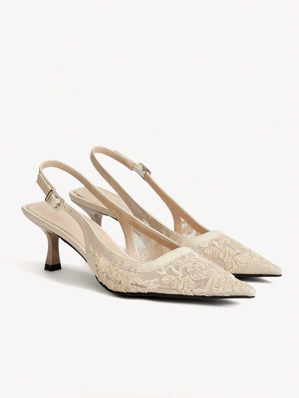 CUCCOO SZL Floral Mesh PU Patchwork Fashionable Sexy Party Elegant Hollow Pointed Toe High Heels For Christmas Spring Shoes
