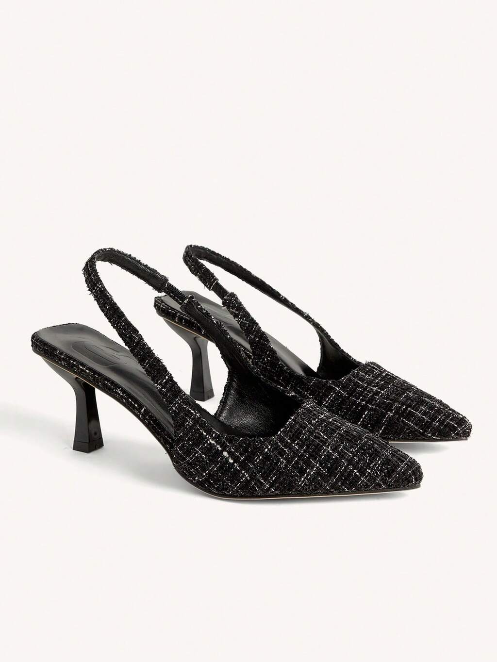 CUCCOO CHICEST Women Shoes Women's Pointed High Heels Black Plaid Material Fashion And Elegance Daily Commuting Hundred High Heels Shoes Slingback Shoes Women's Shoes Elegant Shoes Wedding Shoes