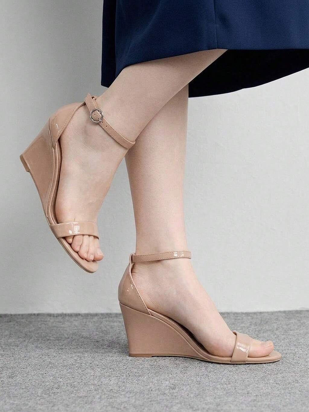 CUCCOO BIZCHIC Women Shoes Round Toe Wedge Heel Apricot With Ankle Strap Women's Fashion Wedge Heel Sandals Stylish Simple Daily Comfort Commuter Women's Sandals Women's Shoes Summer Shoes